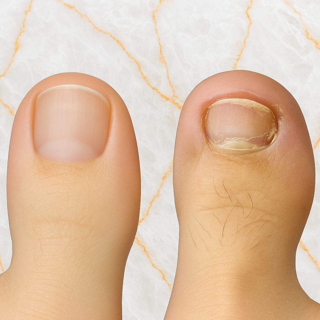 L’onychomycose est une infection fongique des ongles, principalement des pieds, bien qu’elle puisse aussi affecter les ongles des mains. Cette condition est courante et peut entraîner une décoloration, un épaississement et une déformation des ongles.